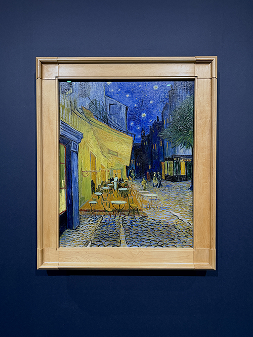 どーん!「夜のカフェテラス」むっちゃ間近でみれる上に、写真を撮れる。ありがたい。展示の壁が藍色なのも良い。