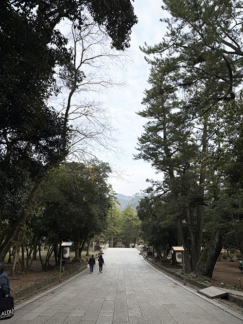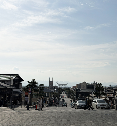 いよいよ、出雲大社です!下の画像は、稲佐の浜に向かう前に撮った写真。朝の8時頃。大社さんをじっくりみた二時間後くらいはもっと人がいっぱいいました。