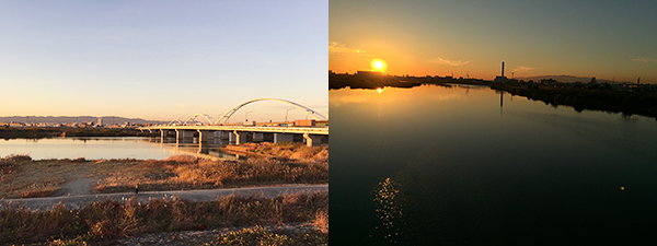 夕焼けが綺麗だったので途中で鳥飼大橋の上でパシャリ。