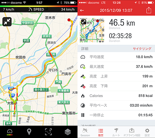 なんか面白いですコレ。 GPSを利用して実際に通ったルートから距離、時速、