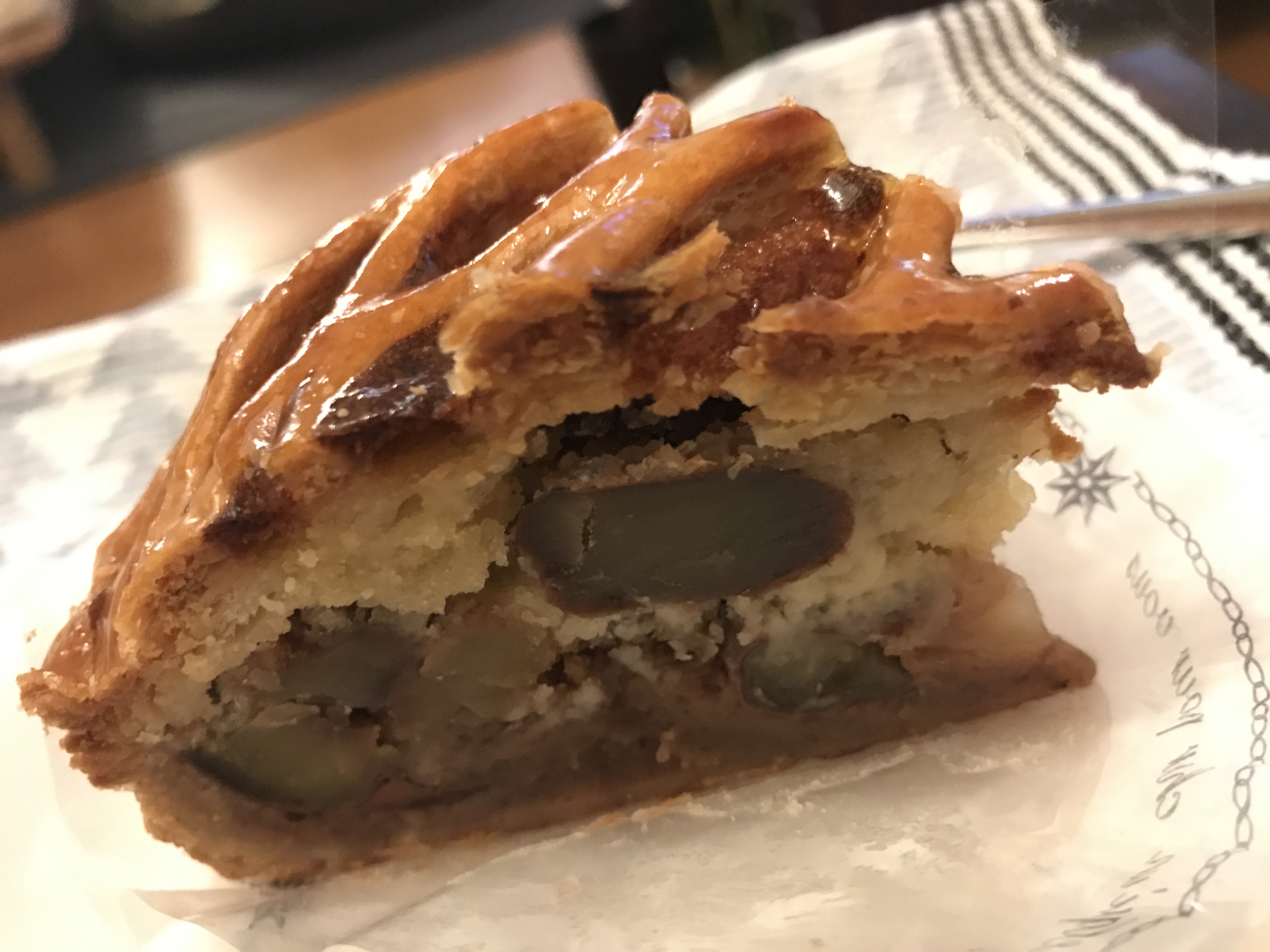 ほら、ほぼ栗です。和栗の渋皮煮がゴロゴロ入っています。パイと栗の間にはクリームも入っていますが、またこれらが良い仕事をしています。パイと栗との良い仲人です。パイも秀逸。発酵バターの香り高いサクパリの生地です。
